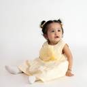 Delightfully sweet, this baby frock features a charming yellow rose embellishment at the center, adding a bright and cheerful touch to a soft, comfortable design.