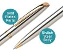 HAUSER Dignity Steel Gold Ball Pen Blister Pack | Twist Mechanism, Smudge Free Writing Ball Pen (Ink Color - Blue)