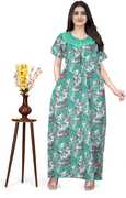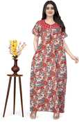 Vinayak offers this delicately embellished rich long Printed nighty dress for a sweat free comfort all night long. This a perfect pick for women who are fond of stylish nightwear. This Half sleeved nighty is a must have for your night wear needs. Made with 100% soft cotton to keep you cool all throughout. This beautiful nighty comes in free size and completely adjustable for 40-48 inches bust size.