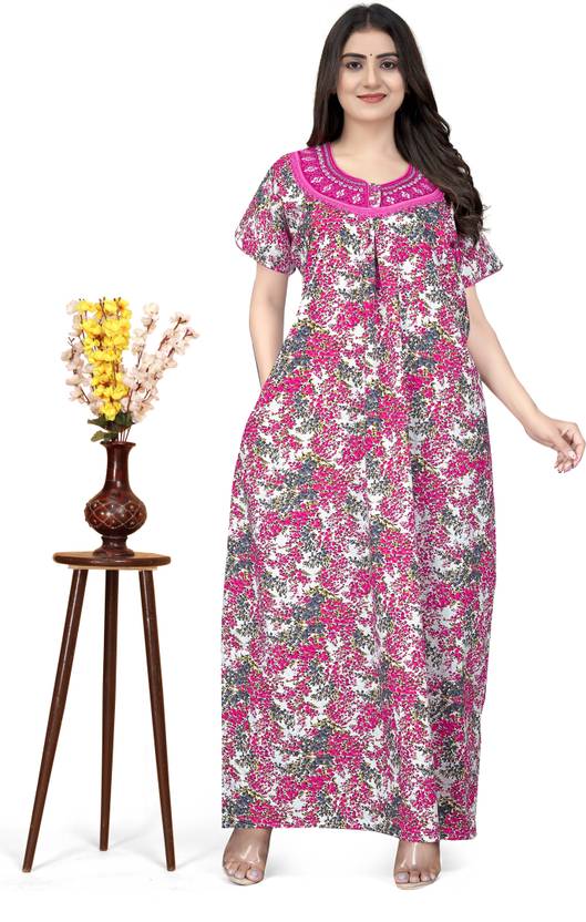 Vinayak Women's A-Line Cotton Printed Multi Colour Maxi Nighty. The Nightgown'S Soft And Smooth Cotton Fabric Is Gentle On The Skin, Making It Very Comfortable To Wear. The Material Is Of A Breathable Quality To Keep You Feeling Relaxed And Cool. Multicolour Combination Women's Nighty and 100% Pure Cotton Material Include. You are easy to wash this design hand wash and machine wash.