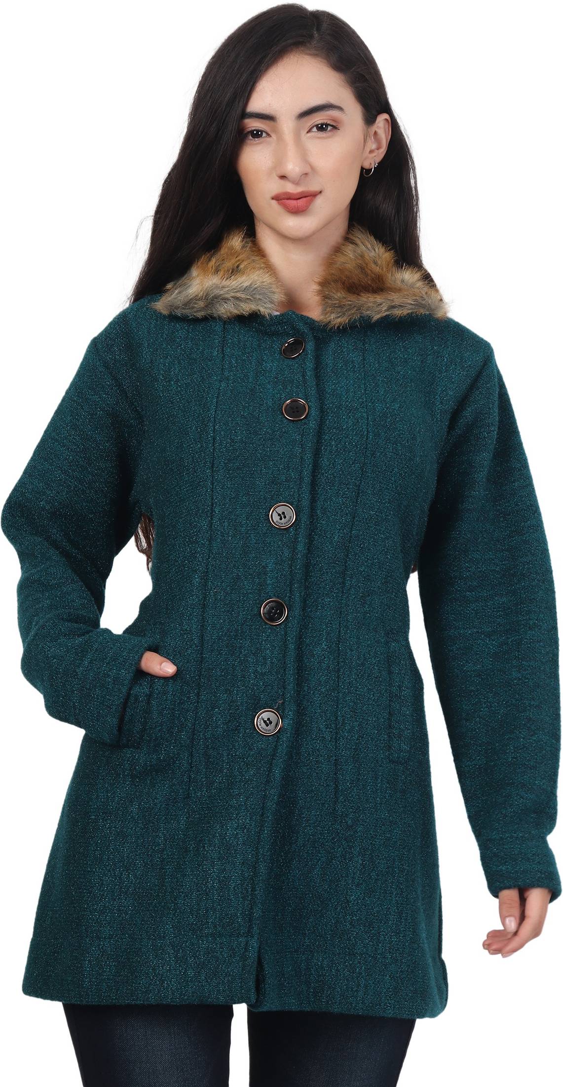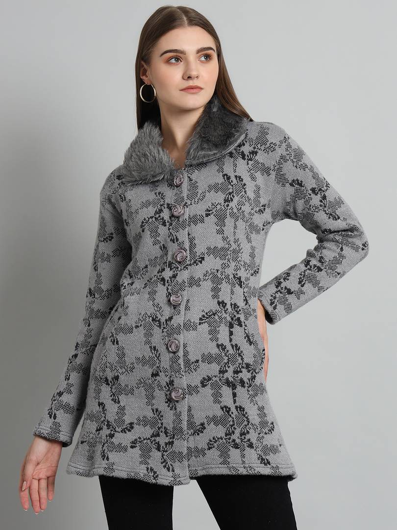 Look stylish wearing this Ladies cardigan from the house of hautemoda. Made from 100% Wool, this cardigan will keep you comfortable and warm all day long. Pair it with a pair of jeans and you are all set to go. Featuring a trendy patterns, this cardigan will fetch you innumerable compliments. This trendy Self cardigan is exclusively available for you this winters collection.