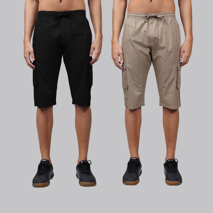 Experience comfort and style with these versatile men's cargo shorts, available in a convenient pack of two colours. These shorts feature a practical drawstring waist for a customised fit and convenient cargo pockets perfect for carrying your essentials. The knee-length cut offers both comfort and mobility, whilst the relaxed fit ensures unrestricted movement during casual activities. Made with durable fabric, these shorts are ideal for everyday wear, whether you're running errands or enjoying outdoor leisure activities. The timeless design pairs effortlessly with t-shirts, polo shirts, or casual tops. These shorts combine functionality with casual style, making them a practical addition to your warm-weather wardrobe. The elastic waistband with drawstring closure provides additional comfort and a secure fit throughout the day.