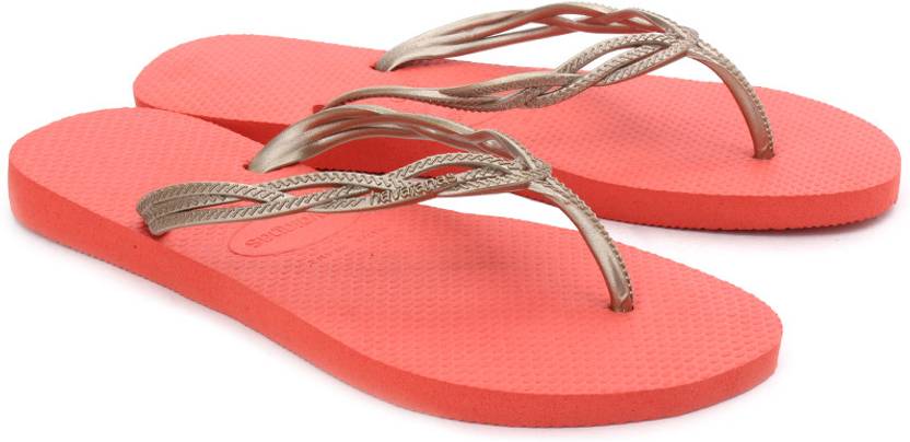 A simplistic strap with a beige braided detail gives a perfect definition to this pair of red flip flops which is exquisitely designed by Havaianas to meet the style and comfort needs of young women. You can team these Flash Sweet flip flops with a printed beachy dress and a hat.