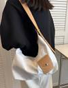 The bag’s design includes a front pocket with a secure button closure, offering easy access to frequently used items. Its lightweight construction makes it suitable for daily use, whether you’re heading to work, shopping, or casual outings. The neutral tones ensure it pairs well with a variety of outfits, making it a versatile addition to your wardrobe.