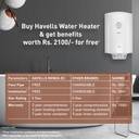 HAVELLS Monza EC 15 L Storage Water Geyser | 4 Star BEE Energy Rating | Glassline Tanked (White)