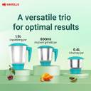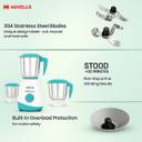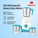 HAVELLS 3J 550 W Mixer Grinder (ASPRO PLUS MIXER GRINDER | 3 Jars | White, Light Blue)