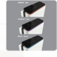 Keep track of the air quality in the room with an LED display indicator - blue for good, purple for fair and amber for bad.