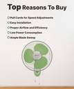 This fan features convenient pull cords to control its three-speed settings, allowing for easy adjustment to your desired airflow. The pull cord mechanism provides straightforward operation, making it simple to switch between low, medium, and high speeds. This design ensures user-friendly functionality, offering customisable comfort to suit any room's cooling needs efficiently and effectively. It is ideal for both residential and commercial use.
