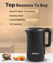 The Caro Kettle features a rust-resistant double wall tank, providing robust protection against corrosion. Its 360-degree cordless design allows for easy handling and flexibility, making it a perfect addition to any kitchen.