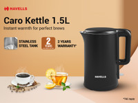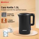 Introducing the Caro Black Kettle, a 1.5-liter user-friendly kettle designed with a stainless steel tank and backed by a 2-year warranty, ensuring both durability and peace of mind.