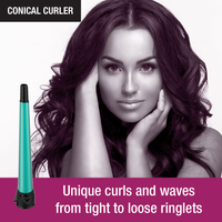 The conical curler in this kit has a sleek tip, allowing you to make tight curls. It can also be used to curl smaller hair strands.