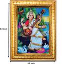 HAWAI Maa Saraswati Designer Wall Hanging Photo with Frame for Worship(8.5x7inch) Religious Frame