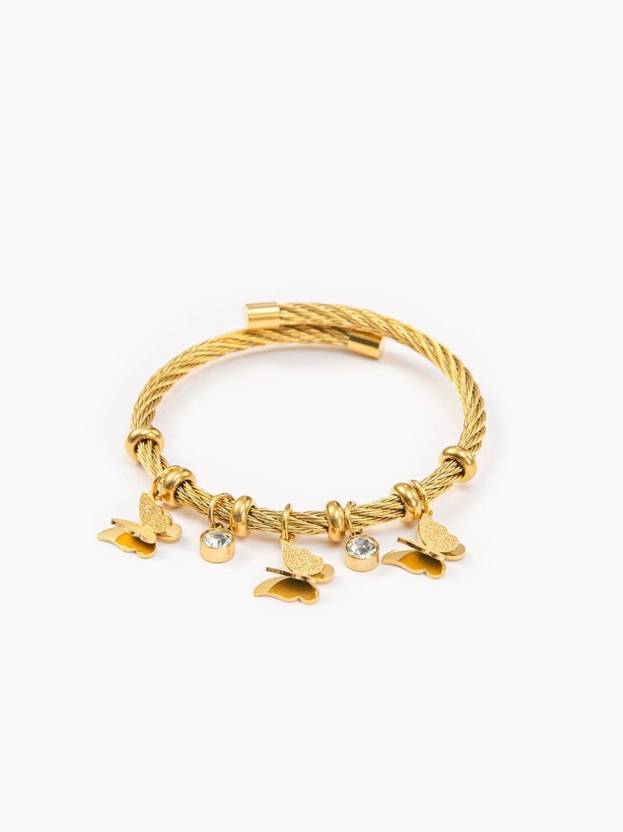 Add a touch of elegance and grace to your look with this stunning gold-plated butterfly charm bracelet. Crafted with intricate detailing, this bracelet features multiple butterfly charms along with sparkling crystal stones that enhance its beauty. Perfect for both casual and festive occasions, this piece complements every outfit effortlessly.