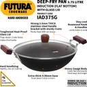 Hawkins Deep-Fry Pan, with Glass Lid (IAD375G) Kadhai 30.4 cm diameter with Lid 3.75 L capacity (Hard Anodised, Induction Bottom)