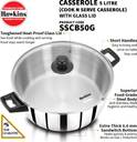 Hawkins Stainless Steel Induction with Glass Lid (SSCB50G) Cook and Serve Casserole (5000 ml)