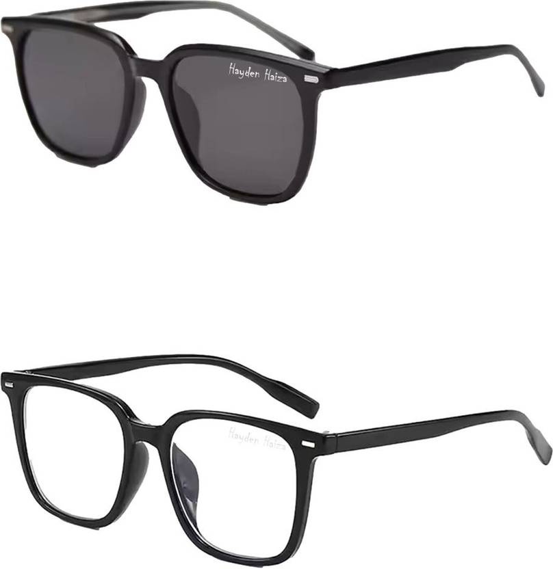 hayden haiza Retro Square Sunglasses (For Men & Women, Clear, Black)