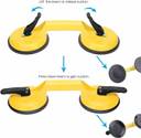 Heavy duty suction cup handle made with durable metal material, high hardness, natural rubber suction cup and strong plastic handle for strong grip. Large Capacity: Vertical suction: 100 Kg. Suitable for lifting and moving glass, floor, window, tile, granite, doors and any clean, smooth, flat, non-porous dry surface. The suction handle comes with quick release and locking lever. The handle makes it convenient to lock the suction in place and provides stability when using it to maneuver objects from place to place, makes the work easier. Aluminium metal alloy shell, electric polishing, gold stoving varnish treatment, fashionable, wear-resistant, non-slip. High quality suction pads with thick natural rubber, strong suction, strong ABS material pressing buckle, strong and durable, not easily deformed. Multiple Applications: Great for lifting glass, adjust repair laminate floor gaps, handling glasses, marbal and granite stone work moving sheet metal and plane surface materials.