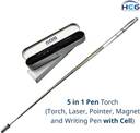 The Premium 031 5 in 1 Rechargeable Multipurpose Pen Torch (Silver, 24 cm) is a professional-grade, versatile tool engineered for precision, convenience, and performance. Designed to serve multiple purposes, this device combines five powerful functions in a single sleek body — a bright LED torch for clear illumination during clinical examinations, a laser pointer for teaching or presentations, a writing pen for everyday utility, a magnet for picking up small metallic items, and a pointer function for highlighting details effortlessly. Crafted from high-quality aluminum alloy, it ensures durability, corrosion resistance, and lightweight handling. Its rechargeable battery system offers long-lasting, energy-efficient performance, reducing the need for frequent replacements. The super-bright LED light provides focused visibility, making it suitable for medical use, classrooms, offices, and workshops. Measuring 24 cm in length, this pen torch is ergonomically designed for a comfortable grip and easy portability, featuring a clip for secure pocket placement. Whether used by doctors, teachers, engineers, or professionals, the 031 5 in 1 Pen Torch is a practical companion that blends utility and sophistication in one device. Compact, stylish, and powerful, it delivers consistent brightness, professional versatility, and dependable performance for all your lighting and pointing needs.