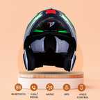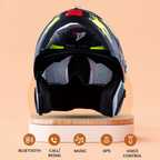 HEADFOX N2 Air 7 Smart Bluetooth GPS |Music | Calls | Waterproof | Voice Asst. Winner DV Motorbike Helmet (Yellow, Matt, Black)