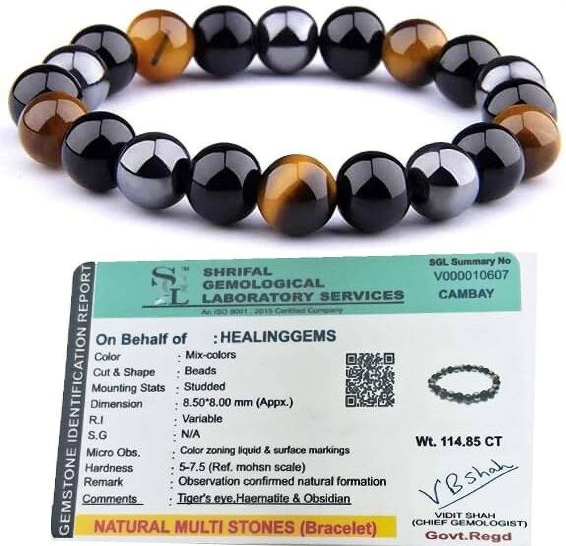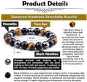 Features natural Tiger Eye for confidence, Black Obsidian for negativity shield, and Hematite for grounding energy in a stylish design Suitable for both men and women, this bracelet features an adjustable macrame closure for a perfect, customised fitEach stone is carefully selected and combined to enhance personal energy, emotional balance, and mental clarityBeautiful combination of tiger eye's golden brown hues, obsidian's deep black, and hematite's metallic grey creates a sophisticated look