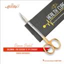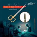 Introducing the Health Cure Goldman Fox Surgical Scissors, a precision instrument designed for delicate surgical procedures. These professional-grade scissors feature a long, thin straight blade configuration with expertly crafted pointed tips and beveled edges for precise tissue dissection. The ergonomic design includes gold-plated finger rings for comfortable handling during extended procedures. Manufactured to meet rigorous medical standards, these scissors demonstrate exceptional sharpness and control, making them ideal for detailed surgical work. The durable stainless steel construction ensures longevity while maintaining consistent performance. Perfect for healthcare professionals requiring reliable surgical instruments, these scissors combine traditional craftsmanship with modern precision engineering. The sleek, professional design reflects their surgical-grade quality and attention to detail. These scissors are an essential addition to any surgical instrument collection, offering the precision and reliability demanded in medical settings.