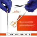 PRECISION DESIGN: Long, thin straight blades with pointed tips and beveled edges for precise and delicate tissue dissection in surgical procedures, PROFESSIONAL GRADE: High-quality surgical scissors crafted for medical professionals, featuring superior cutting performance and control, DURABLE CONSTRUCTION: Made with premium surgical-grade materials ensuring longevity and maintaining sharpness through repeated use, ERGONOMIC HANDLING: Comfortable grip design with gold-plated finger rings for enhanced control during delicate procedures