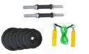 HEALTH FIT INDIA ONLINE SERIES : NICKLE DUMBLE RODS , 10 KG ( 2.5 KG X 4 ) WEIGHT PLATES , WOODEN HANDLE SKIPING ROPE Dumbbell Kit Kit