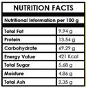 Nutrient Content | - Nutritional Information per 100 g - Total Fat: 9.94 g, Protien: 13.54 g, Carbohydrate: 69.29 g, Energy: 421 kcal, Total Sugar: 5.68 g, Moisture: 4.68 g, Total Ash: 2.35 g
