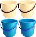 Heart Home 4 Pieces Unbreakable Strong Plastic Bathroom Bucket 13 Ltr (Cream & Blue) - CTHH17323 13 L Plastic Bucket (Multicolor)