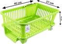 Other Features | - Package Included :1 x Dish Rack, 1 x Plastic Draining Tray, 1 x Knife and Fork Holder,Material: Plastic, Color: Green,Size: 44 cm x 30 cm x 15 cm,Material: Made of durable heavy-duty plastic, environmental safe and healthy. Size :-(L) 44 cm , (W) 30.5 cm , (H) 14.8 cm,This product can not only be used as a storage shelf to place the dishes that are not needed, but also can be placed just washed dishes, it is ideal for draining and drying dishes efficiently Also use in office for organizing documents, stationery, magazine, essentials,Convenient: Hollow design, there is a diversion tray at the bottom which is easy to drain and there is a special small drain place to place chopsticks and spoons, the chopsticks and dishes placed separately which is very convenient,The Design, Human Diversion Bottom Tray, More Convenient and Clean , Supporting Individual Chopsticks Spoon Cylinder, Side Hooks, You Can Freely Hanging In The Draining Rack,