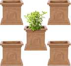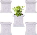 (5 Pcs) Flower / Tulsi Pot | Color - Marble Design-Beige | Material - Plastic | Product Dimensions - 30 cm x 30 cm x 30 cm