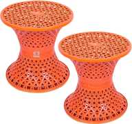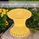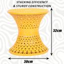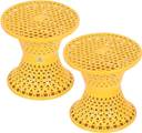 Heart Home Plastic Mesh Damroo Seating Stool|Both Sided Stool for Guestroom|Packof 2|Yellow Stool (Yellow, Pre-assembled)
