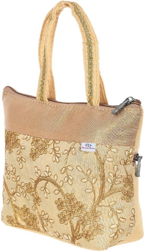 Polyester Embroidery Design Hand Bag For Women/Girls With Handle (Cream)