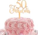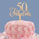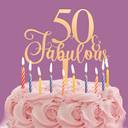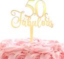 Heartily Happy Birthday/Anniversary Fabulous 50 Cake Topper plus Candle Combo Baking Sparkles Cake Topper (Golden Pack of 1)