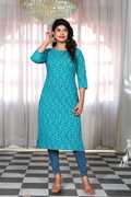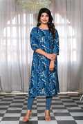 Heba Women Printed A-line Kurta (Blue)
