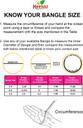 Heenaz Bangels Elevate your traditional style with this exquisite set of fashion bangles designed especially for women. These bangles showcase intricate traditional patterns that beautifully complement both ethnic wear and contemporary outfits. Perfect for festivals, celebrations, or daily wear, this versatile set adds a touch of elegance to your ensemble. The bangles feature classic designs that have stood the test of time, making them a timeless addition to your jewellery collection. Their comfortable fit allows for extended wear during special occasions or regular use. Whether paired with a stunning saree, elegant salwar suit, or modern western attire, these bangles will enhance your overall look. The set makes for a thoughtful gift choice for loved ones or a delightful treat for yourself. Please refer to size measurements to ensure the perfect fit for your wrist.