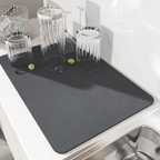 Large Dish Drying Mat: Each kitchen counter mat measures, which is larger than ordinary draining mats and can hold large pots, pans, and more dishes. Dishmats are perfect for kitchen counters and bathroom countertops., Super Absorbent: Microfiber dish drying mat is made of super absorbent nano material, the drying pad is soft and highly absorbent, which can dry quickly. In addition, the drying mat is thick enough to better protect countertops, tableware, and glassware from damage and contamination., Easy to Clean: The drying mats for countertop can be rolled up and stored in a drawer without taking up extra space. If the mat needs washing, simply rinse it under water and wash with a cleaning solution., Anti-slip: The natural rubber bottom of the drying mat has a good anti-slip effect and it keeps the mat in place. It also prevents water from seeping out from the back of mat and leaving stains on the countertop, keeping the kitchen countertop clean for a long time.