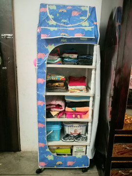 This folding wardrobe is simple to install and surprisingly durable. The PVC material feels robust and is ideal for compact settings. The black finish gives it a sleek appearance. Highly recommended!