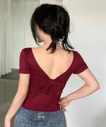 Add a modern Korean touch to your casual style with this trendy U-neck top. Designed with a cute back ribbon and soft Lycra blend fabric, it offers a body-hugging fit and breathable comfort. The short sleeves make it ideal for daily wear or styling with layered outfits