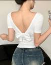 Add a modern Korean touch to your casual style with this trendy U-neck top. Designed with a cute back ribbon and soft Lycra blend fabric, it offers a body-hugging fit and breathable comfort. The short sleeves make it ideal for daily wear or styling with layered outfits
