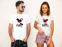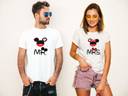 Printed Couples White T shirt Polyester T Shirt for Couple Round Neck T Shirt