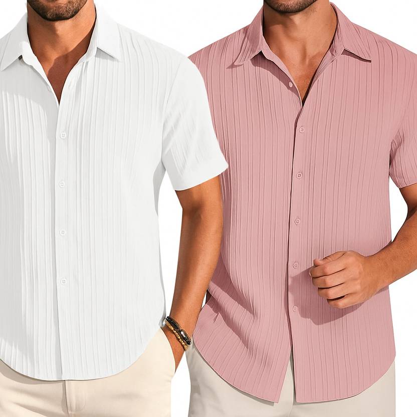 Helken Men Self Design Casual Light Green Shirt (Pack of 2)