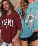 These oversize tshirt for women are the perfect addition to any wardrobe. The stylish Loose fit and drop Shoulder design make it an incredibly comfortable and flattering piece. These loose t shirts for women is perfect for any casual occasion, with its long length providing extra coverage and style. Whether dressed up with a skirt or dressed down with jeans, these printed tshirts for women will keep you looking fashionable and feeling great.