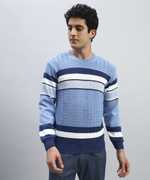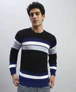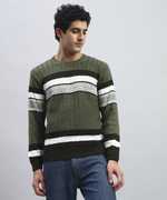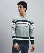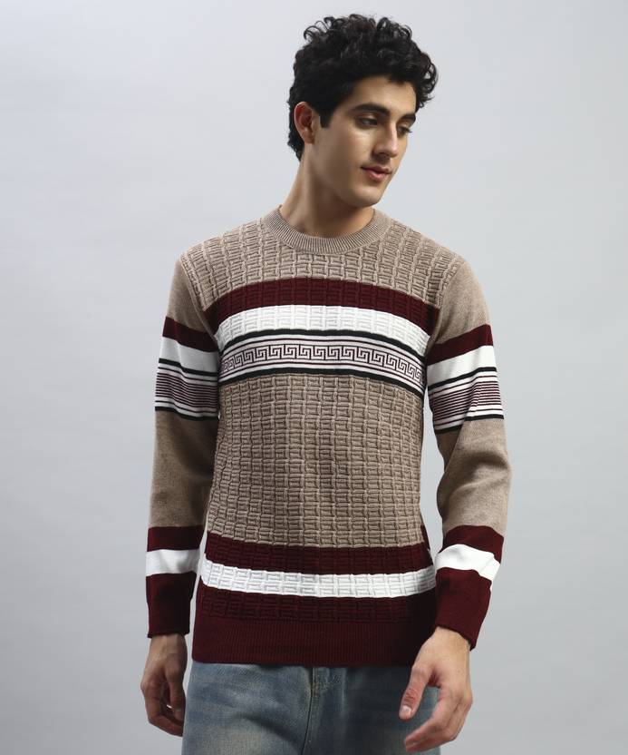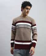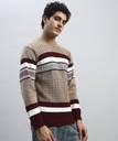 HELL BOUND Striped Round Neck Casual Men Brown Sweater