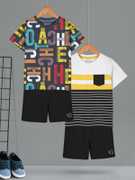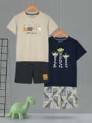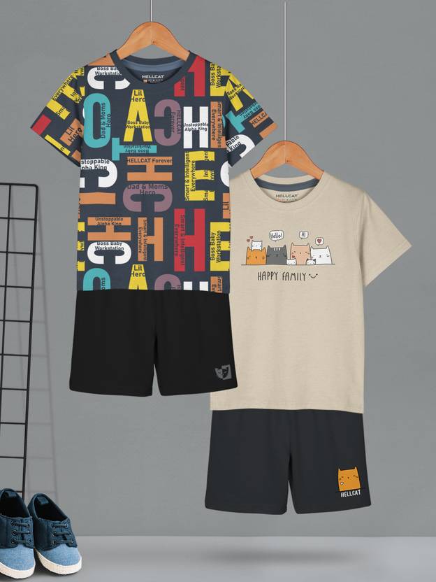 Hellcat Boys Casual T-shirt Shorts (Beige, Black)