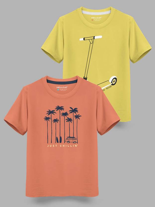 Hellcat Boys Printed Cotton Blend Regular T Shirt (Yellow, Pack of 2)
