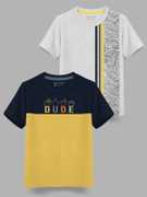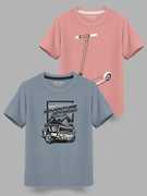 Hellcat Boys Printed Cotton Blend Regular T Shirt (Light Blue, Pack of 2)