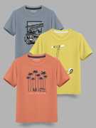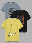 Hellcat Boys Printed Cotton Blend Regular T Shirt (Light Blue, Pack of 3)