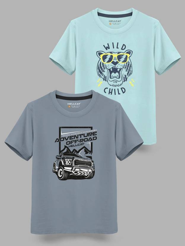 Hellcat Boys Printed Cotton Blend Regular T Shirt (Green, Pack of 2)