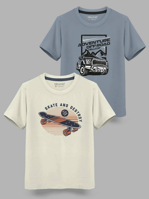 Hellcat Boys Printed Cotton Blend Regular T Shirt (Beige, Pack of 2)